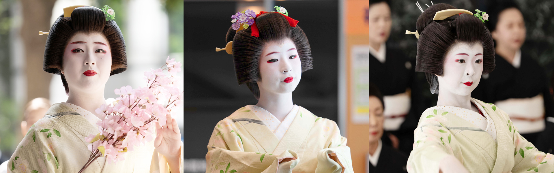 芸妓がお稽古の成果を披露する活躍の場は、料亭のお座敷以外にも料理屋、ホテル、イベント会場などへと広がり、鑑賞できる催しも増えています。