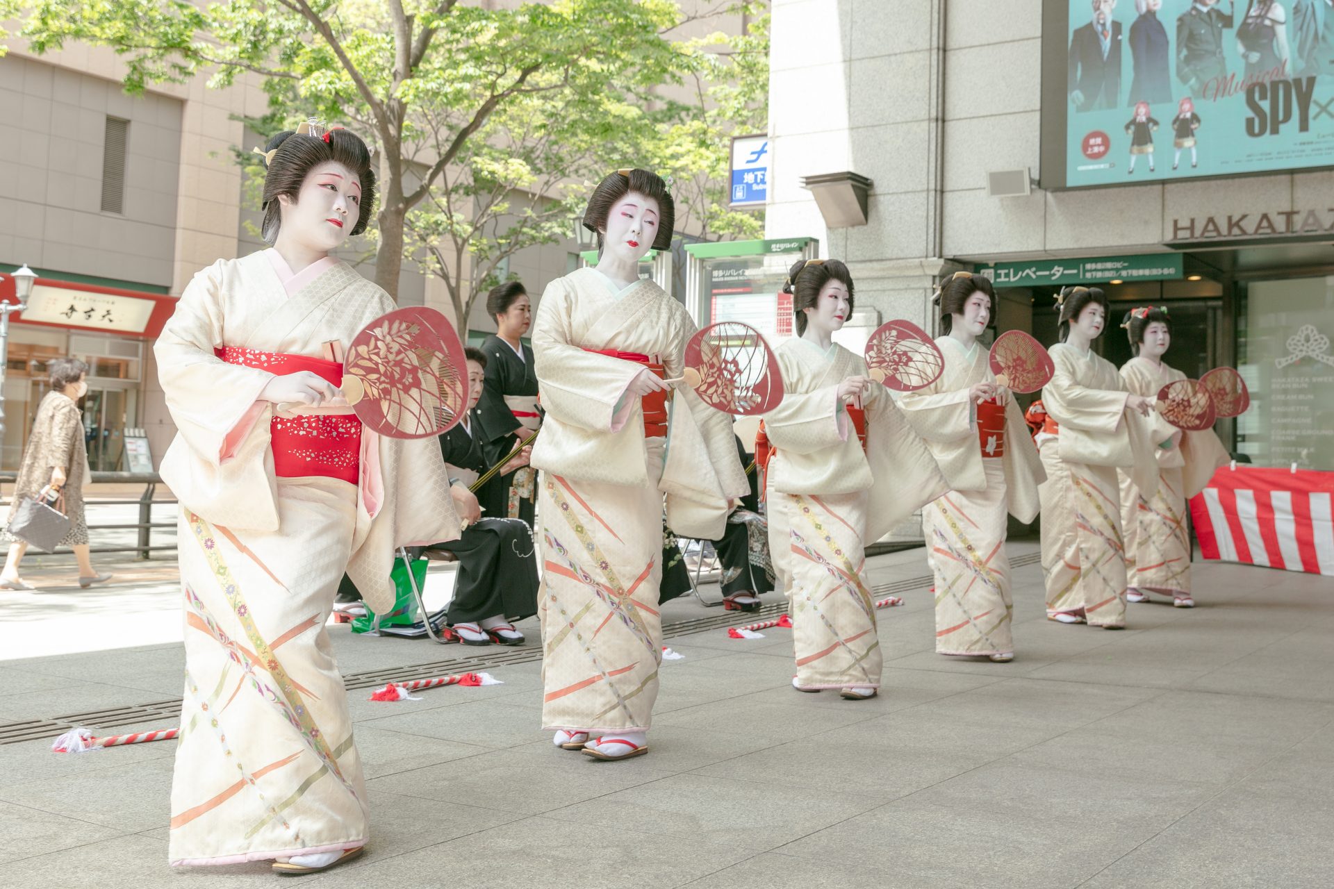 Hakata’s beautiful traditional performing art Hakata Geisha Hakata Kenban. The banquets and tatami rooms are gorgeously colored with songs and dances by geisha.